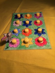 b, Nektáros ösvény: A játékot 2-4 gyerek játszhatja. A játékosok közös célja, hogy kiépítsenek egy nektáros ösvényt. A játékos addig léphet a zöld befele mutató nyíl melletti virágtól egyesével, amíg nektáros virágra lépnek. Amikor eléri a játékos az első nektár nélküli virágot, a kupakot ki kell cserélnie egy másikkal, úgy, hogy nem nézheti meg, hogy mi van a másik kupak alatt. A játékosok minden körben a nyíltól indulnak. Ha elérik az átlósan szemben lévő virágot a másik nyíllal, vége a játéknak.