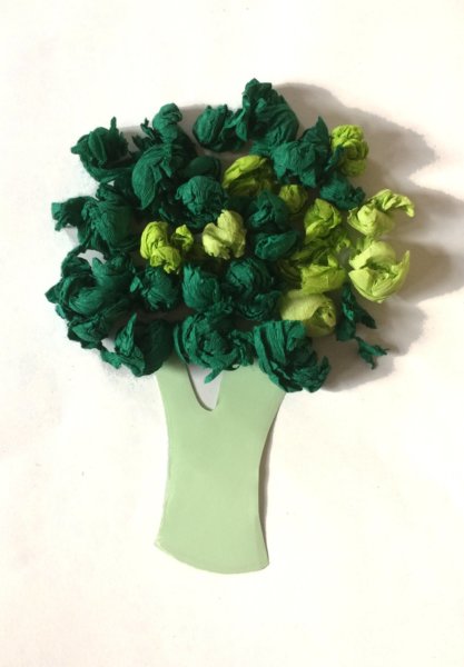 - A kép elkészítésének menete: A gyerekek galacsinokat gömbölyítenek a kreppapírból. Körberajzolják a torzsa sablont és kinyírják. Felragasztják az A4-es papírra a torzsát és fölé először a ragasztót ecsettel fölvíve a papírra felragasztgatják a galacsinokat.